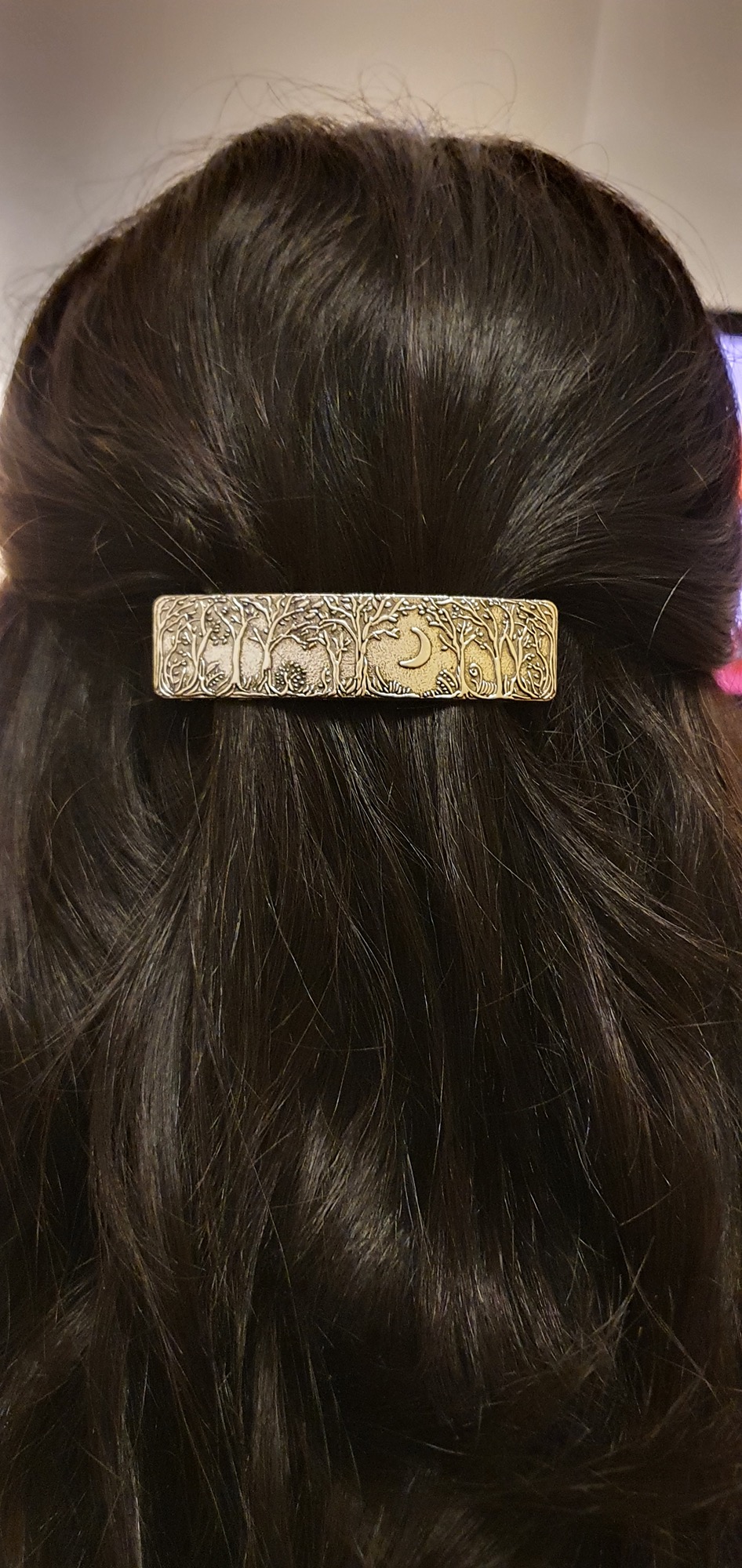 EMBOSSED WOODLAND MOON BARRETTE